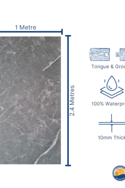 At 1 metre wide, 2.4 metres tall, and 10mm thick, the HydroWall Panels cover more space with fewer joins, reducing installation time and creating a smooth, striking finish. The hollow core design keeps them lightweight without compromising strength, while tongue-and-groove joints ensure a watertight fit that’s perfect for bathrooms and shower enclosures.