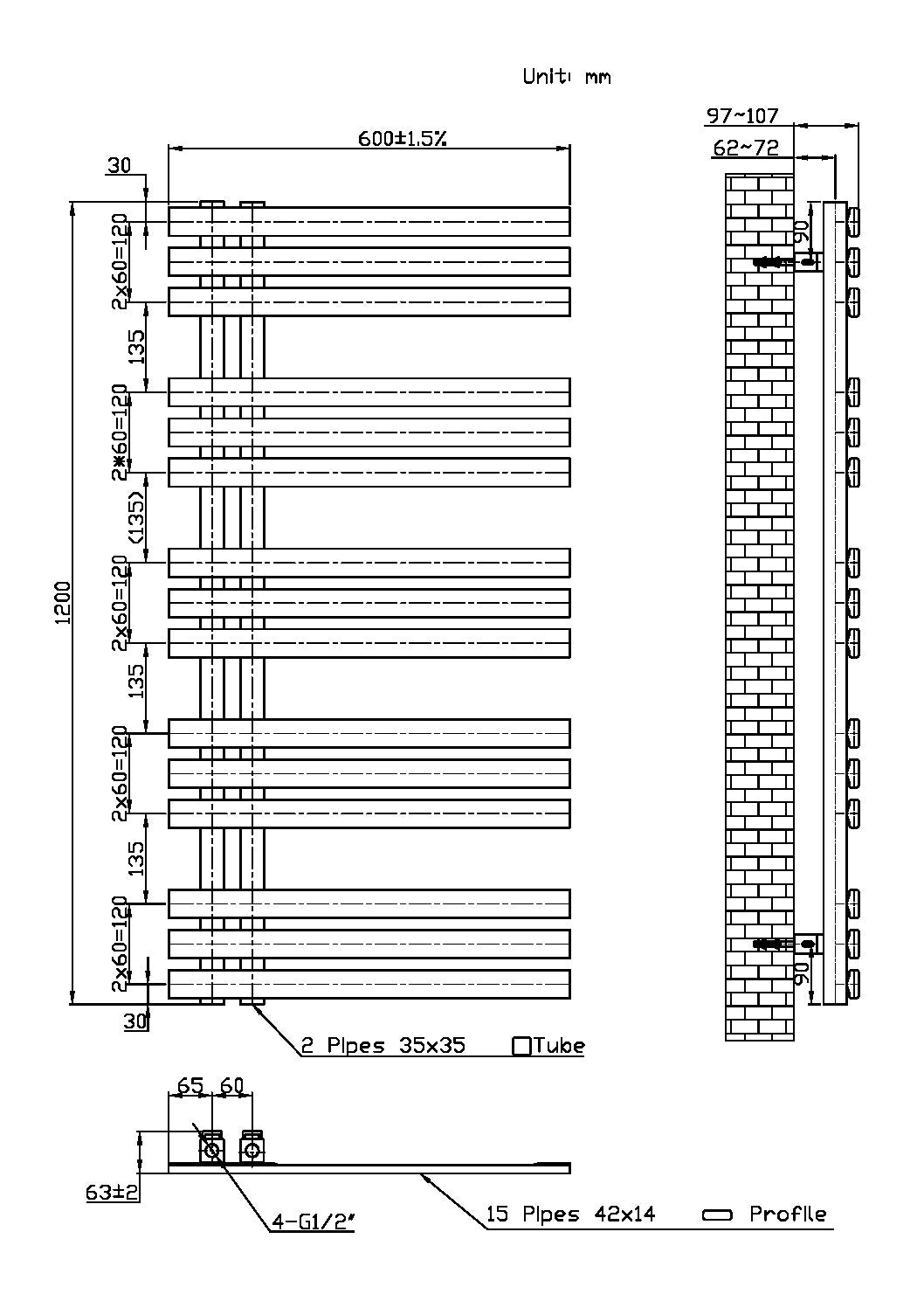 Pipe Centres (C1): 60 mm
