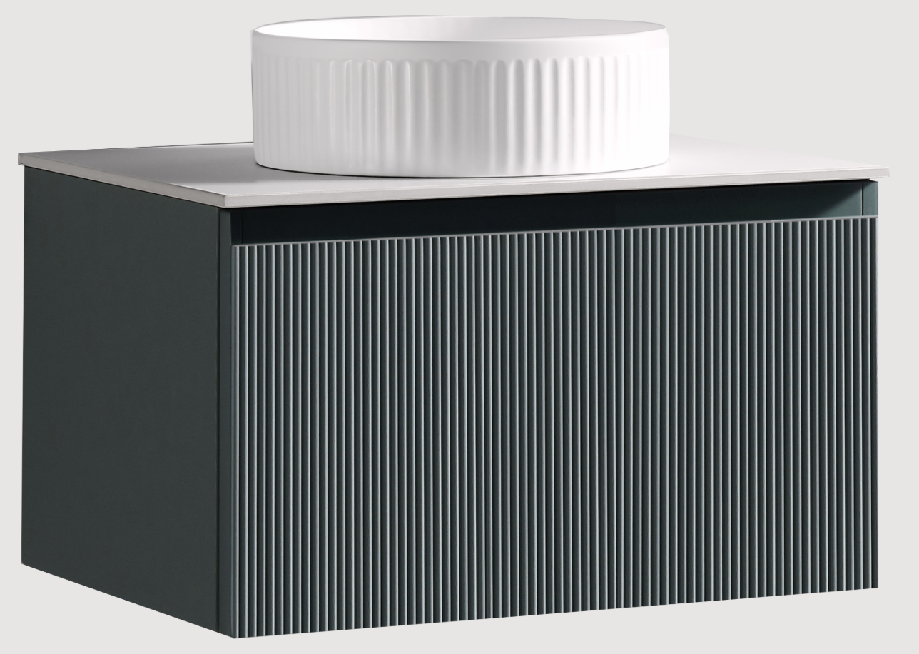 Inspired by the principles of Italian design, this countertop vanity unit combines precision craftsmanship and refined materials to create a statement piece for your bathroom. The horizontally fluted drawer front is paired with a sleek inset handle design, giving the unit a look that is both modern and timeless. Built to last, the vanity features premium soft-closing metal drawers, engineered for strength and a smooth, effortless glide — a true reflection of Italian attention to detail and commitment to quality.
