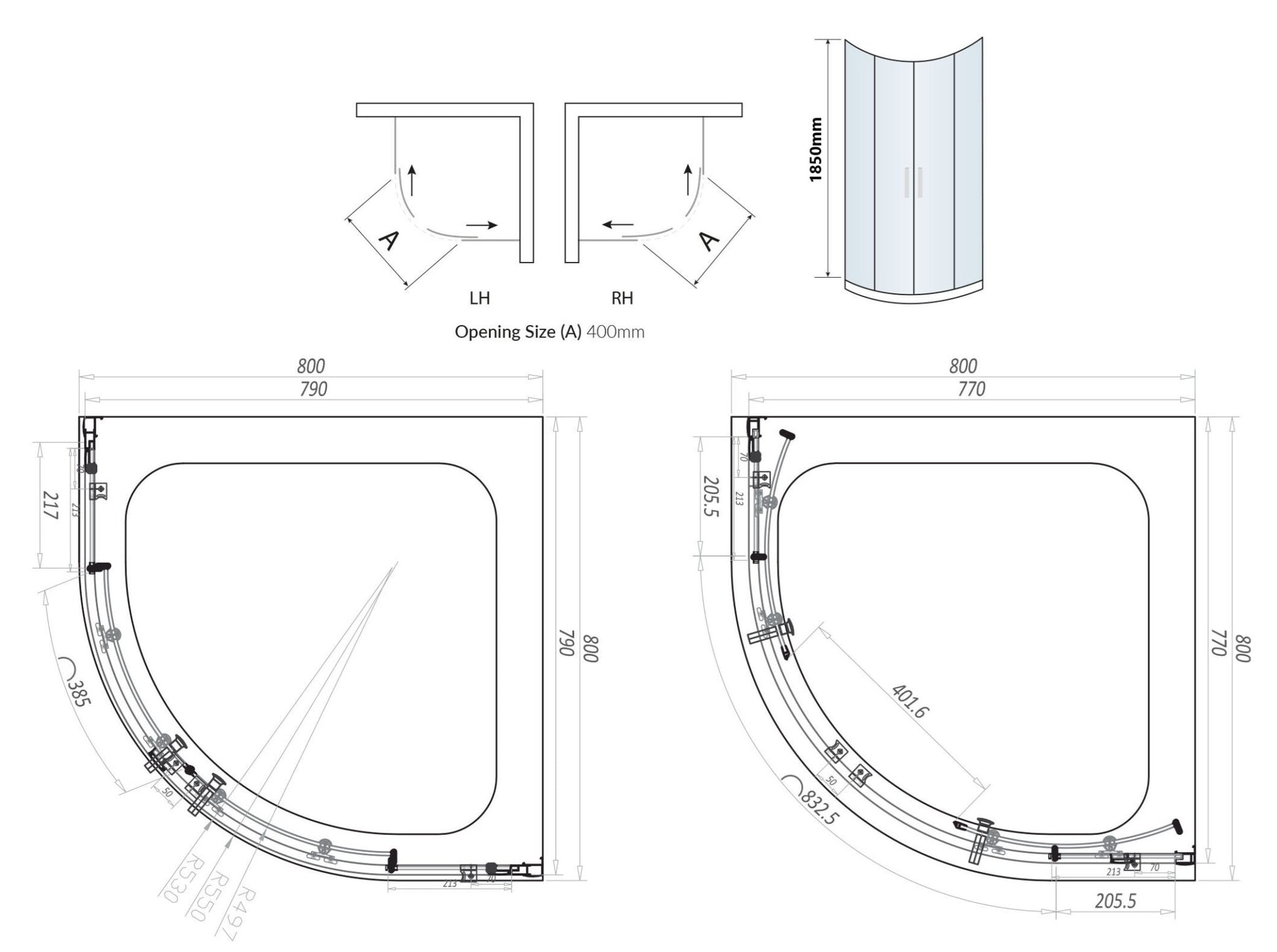 800x800mm double door quadrant design