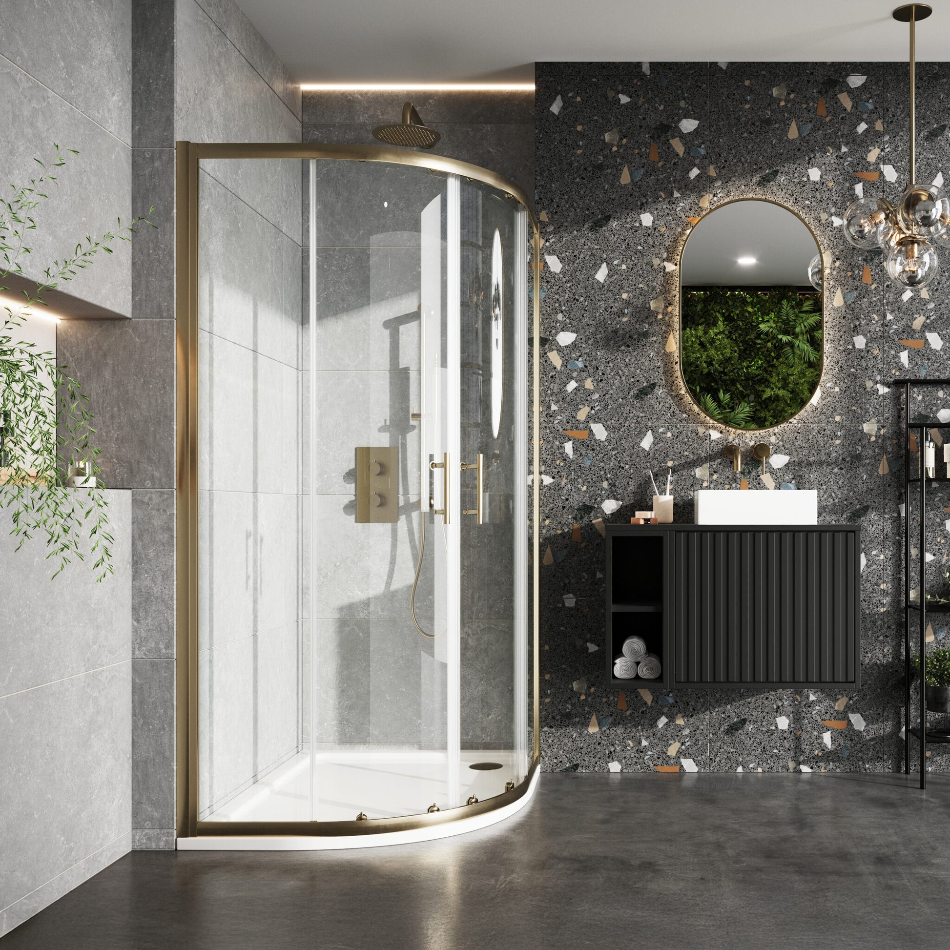 The 800x800mm Double Door Quadrant Shower Enclosure in brushed brass offers a luxurious touch to compact bathrooms and en-suites, combining premium style with everyday practicality. Made from toughened safety glass and framed in a durable brushed brass aluminium finish, this enclosure provides both strength and sophistication. Its smooth sliding action and efficient space-saving design ensure a comfortable and convenient showering experience, even in smaller layouts.
