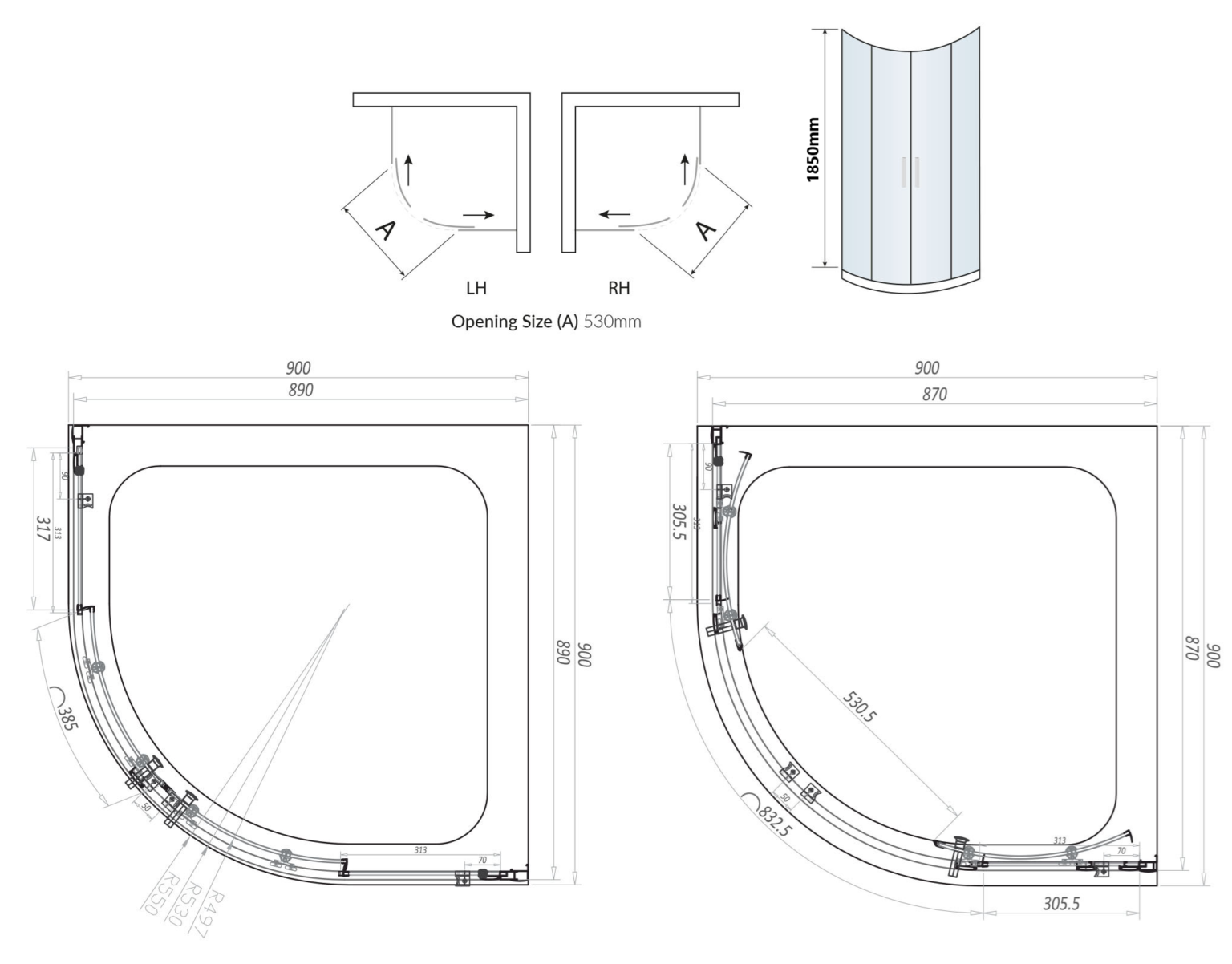 900x900mm double door quadrant design